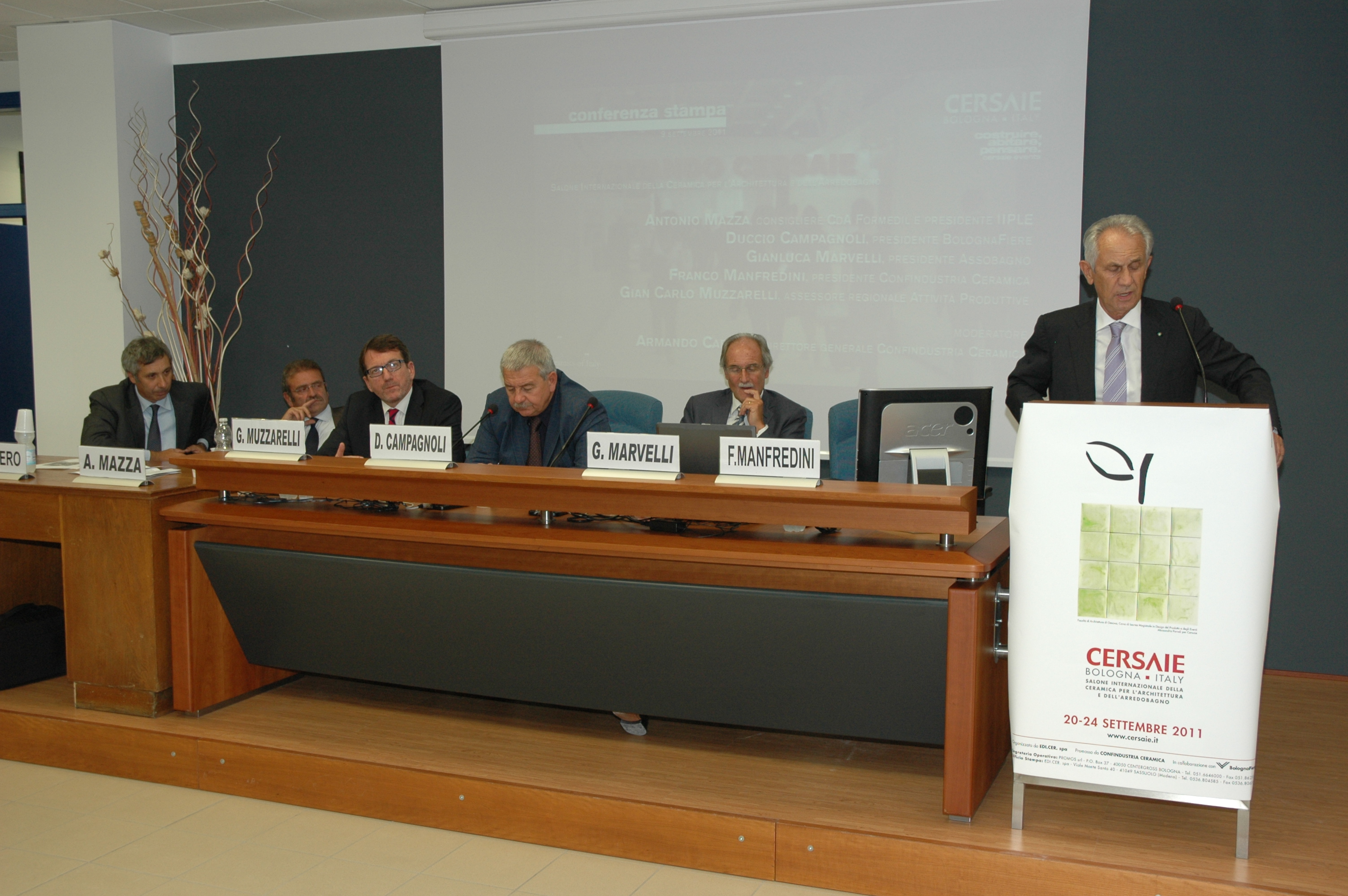 La conferenza stampa, moderata dal Direttore Generale di Confindustria Ceramica Armando Cafiero , ha visto la partecipazione di Formedil consigliere e Direttore IIPLE Antonio Mazza , Presidente di BolognaFiere Duccio Campagnoli, Presidente Assobagno Gianluca Marvelli , Presidente di Confindustria Ceramica Franco Manfredini e il Responsabile Attività Produttive della Regione Emilia Romagna Gian Carlo Muzzarelli .